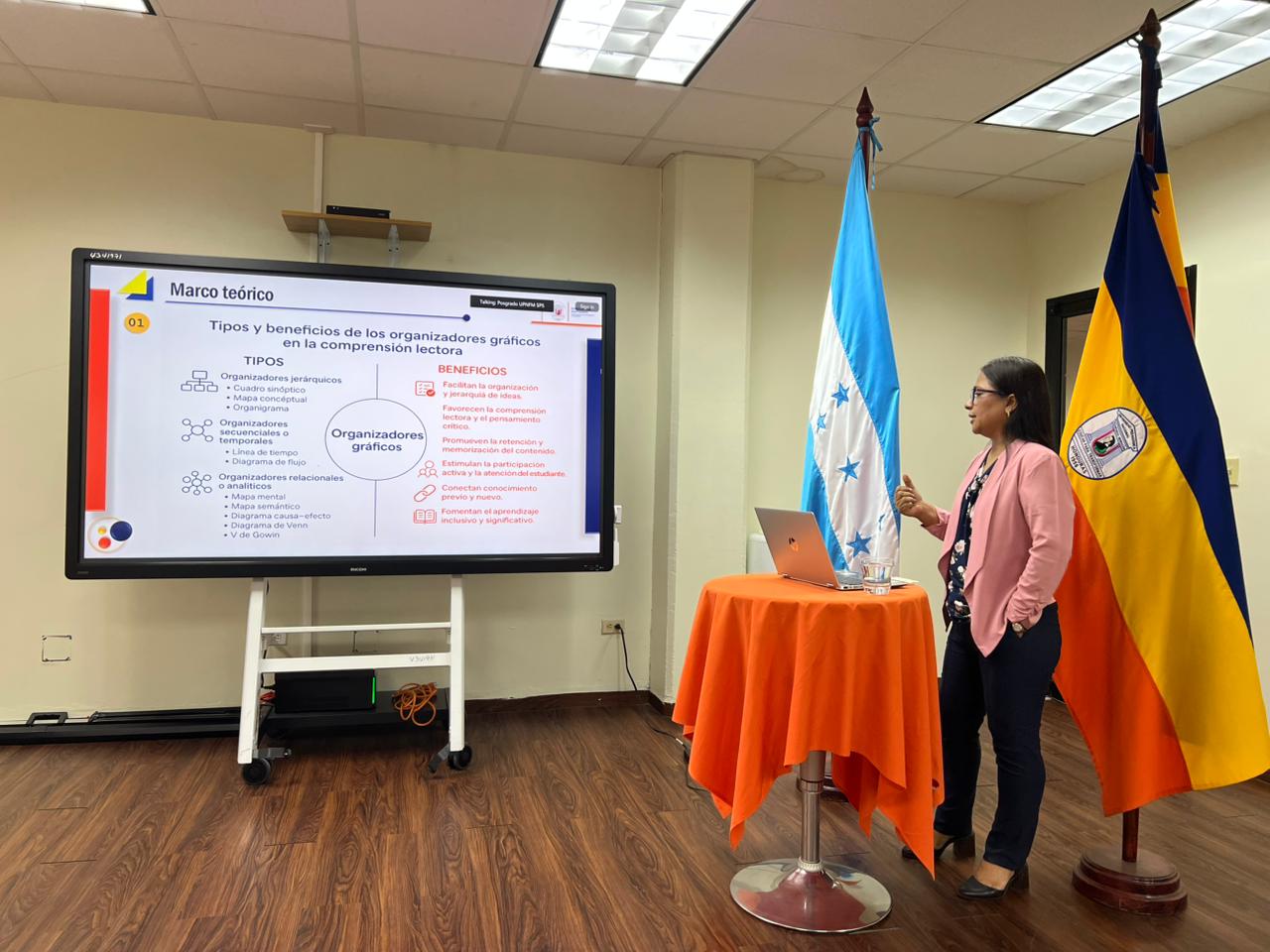 La Licenciada Mirna Victoria Jovel Bonilla, estudiante de la Maestría en la Enseñanza de Lenguas con Orientación en Español, realizó exitosamente la defensa de su tesis titulada “Organizadores gráficos: una estrategia para potenciar la comprensión lectora en los estudiantes del Centro de Educación Básica Educateh”; La presentación tuvo lugar el día lunes 03 de noviembre de 2025, en las instalaciones de Posgrado del Centro Universitario Regional de San Pedro Sula.