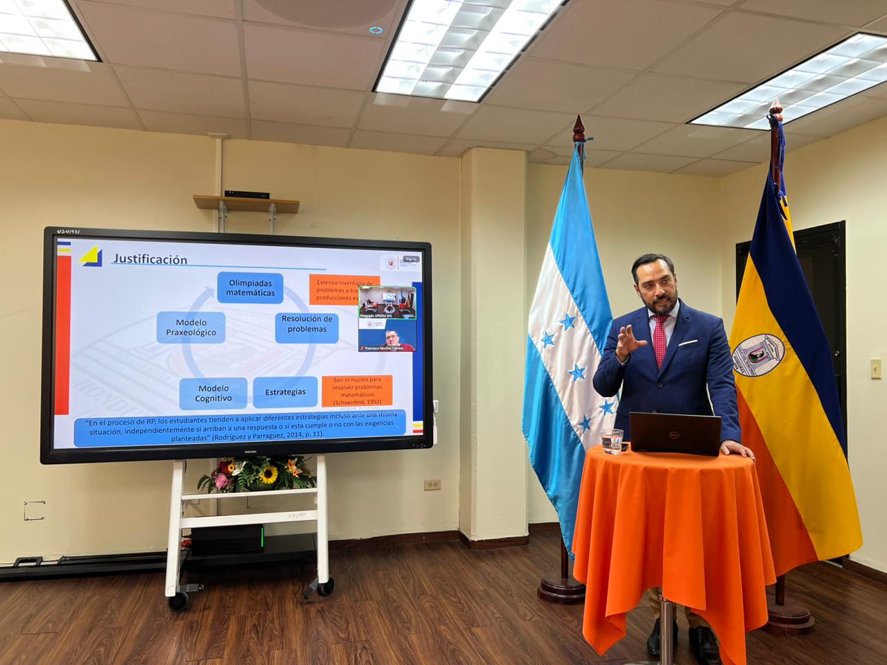 El Licenciado Diego Fernando López Mejía, estudiante de la Maestría en Matemática Educativa, realizó exitosamente la defensa de su tesis titulada “Análisis praxeológico de las estrategias de resolución de problemas de estudiantes del II ciclo de Educación Básica en la Olimpiada Infantil de Matemáticas en Intibucá 2024: una aproximación desde dos constructos teóricos”; La presentación tuvo lugar el día jueves 27 de noviembre de 2025, en las instalaciones de Posgrado del Centro Universitario Regional de San Pedro Sula.