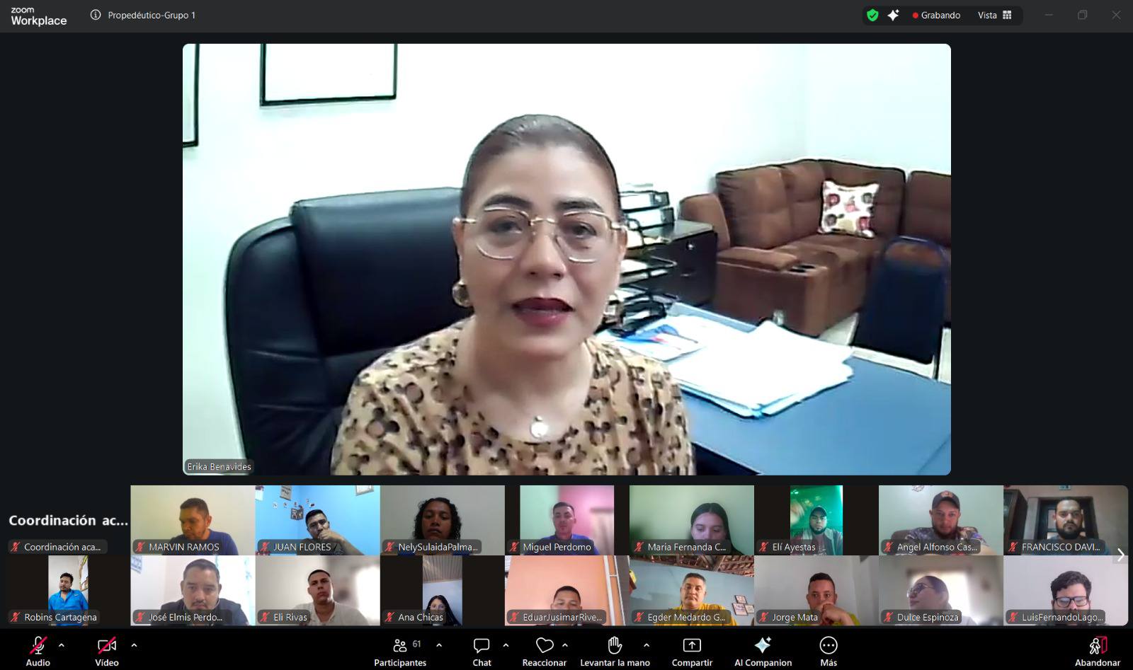 Finalizada esta primera etapa, se dio paso a la segunda fase, en la que los estudiantes trabajaron bajo la coordinación de la máster Merren, quien brindó las orientaciones académicas y administrativas necesarias para el desarrollo de los cursos del plan de estudios. Se les brindo además indicaciones generales en cuanto al uso y manejo de la plataforma educativa a utilizar.
